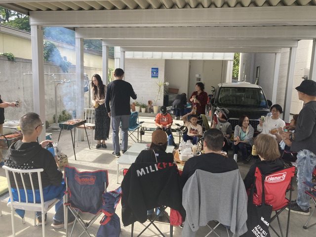 ガレージをお借りしてBBQ。