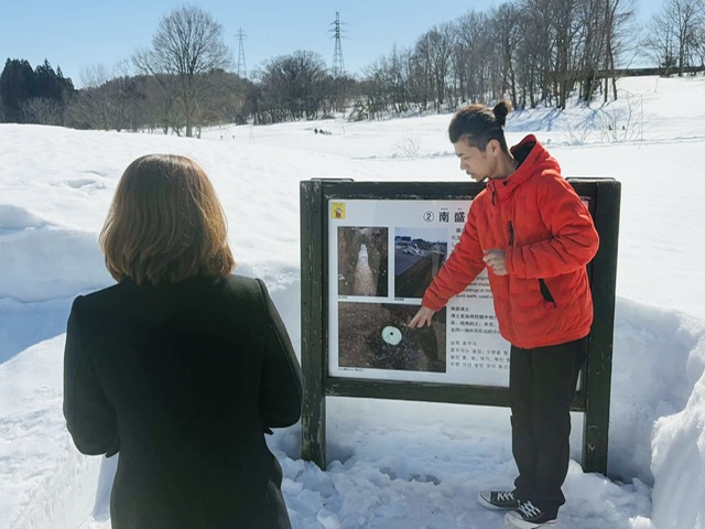 初めて雪の中の三内丸山遺跡ガイドを