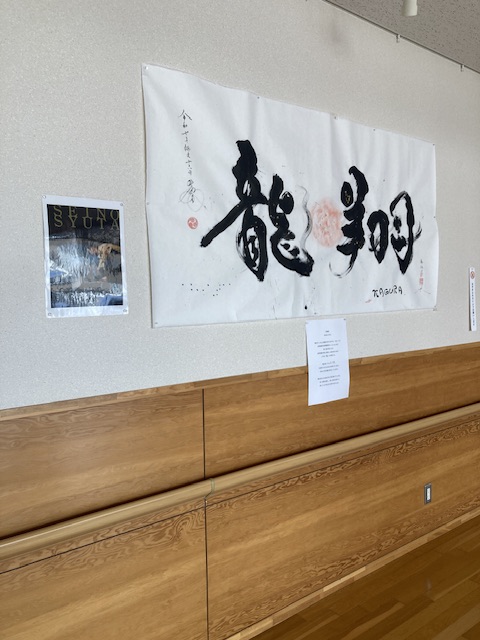 しゅーてぃの書が飾られている